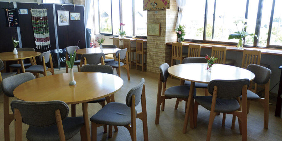 ドーナツの会の居場所は、センターの3階に位置し、日当たりが良く、四季折々の美しい景色が楽しめます。第2・第4木曜日には、こども食堂を開いています。みんながドーナツのようにつながり合って、心も身体も元気になることを願っています。